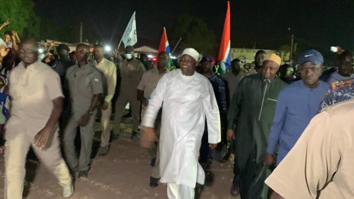 Thousands of National People’s Party (NPP) supporters, dressed in green and white, welcomed the president with traditional drumming, dancing, and chants of “Barrow 2026!” as he pledged immediate action on long-standing demands for better roads, agricultural support, and youth employment.