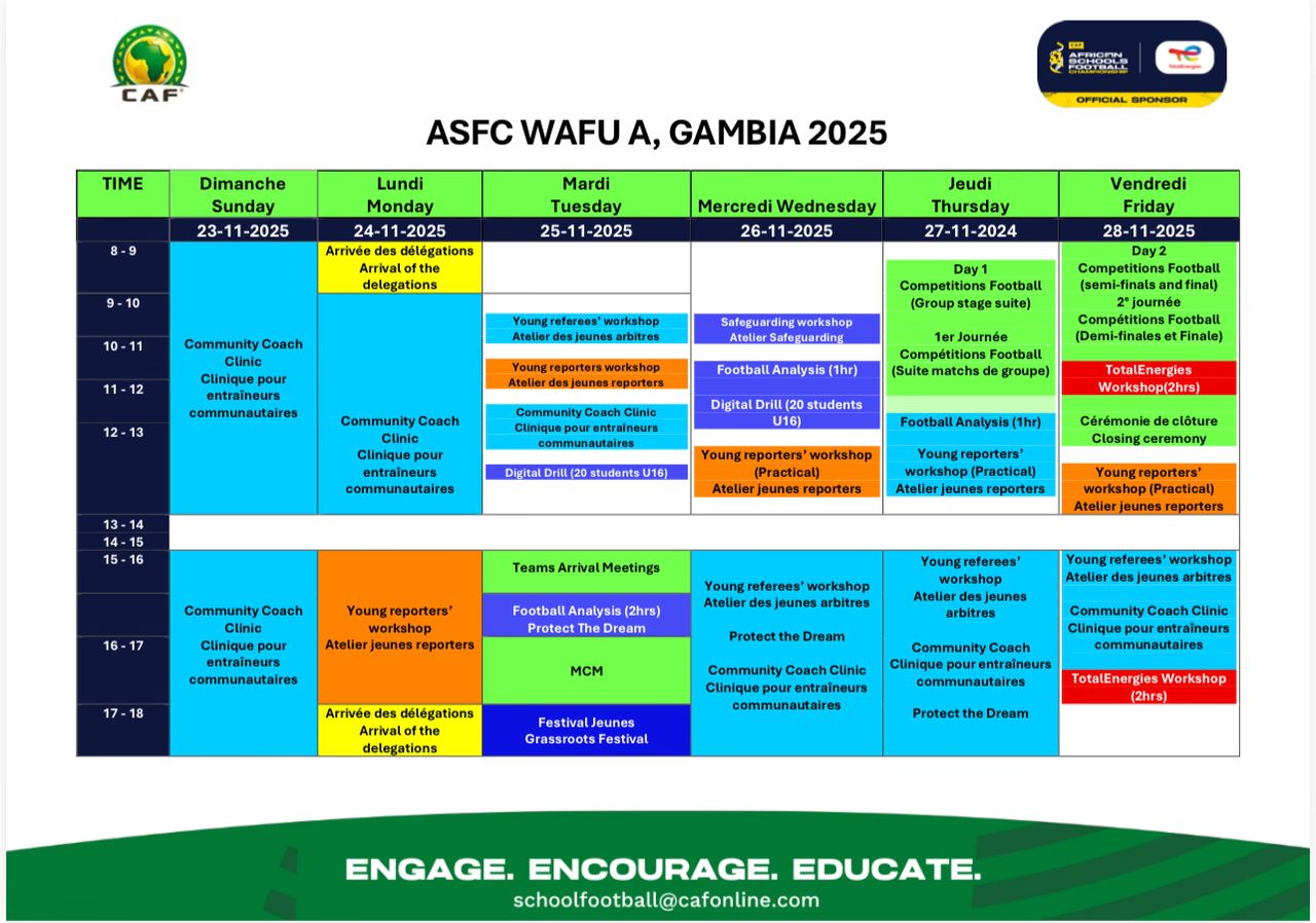 The Gambia is set to host the ASFC WAFU A 2025 programme from 23–28 November 2025, bringing together young referees, young reporters, community coaches, and youth athletes for a week of intensive training, workshops, and football competitions under the auspices of the Confederation of African Football (CAF).