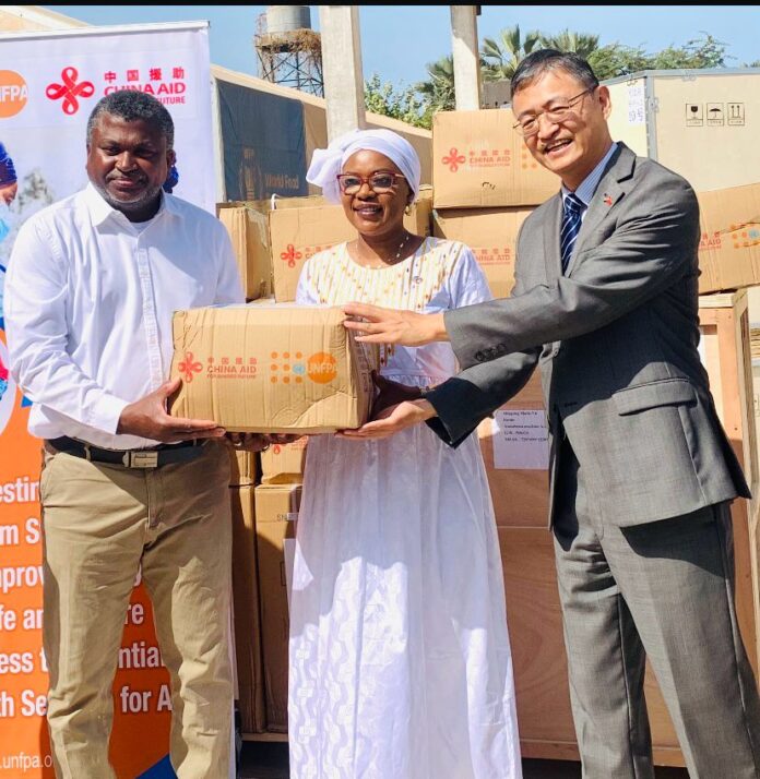 In a significant step toward improving maternal and reproductive health services, the Chinese government, in collaboration with the United Nations Population Fund (UNFPA), donated $620,000 worth of medical equipment to The Gambia on Friday, March 7, 2025. The handover ceremony took place at the central medical store in Kotu, where critical supplies—including 60 delivery beds, five anesthetic machines, 10 oxygen concentrators, and 1,000 dignity kits—were formally presented.