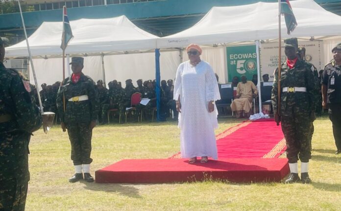 The Gambia Armed Forces (GAF) and the ECOWAS Mission in The Gambia on Friday joined forces to celebrate the 50th anniversary of the Economic Community of West African States (ECOWAS) at McCarthy Square in Banjul, placing the growing contributions of women in peacekeeping operations at the heart of the commemoration.