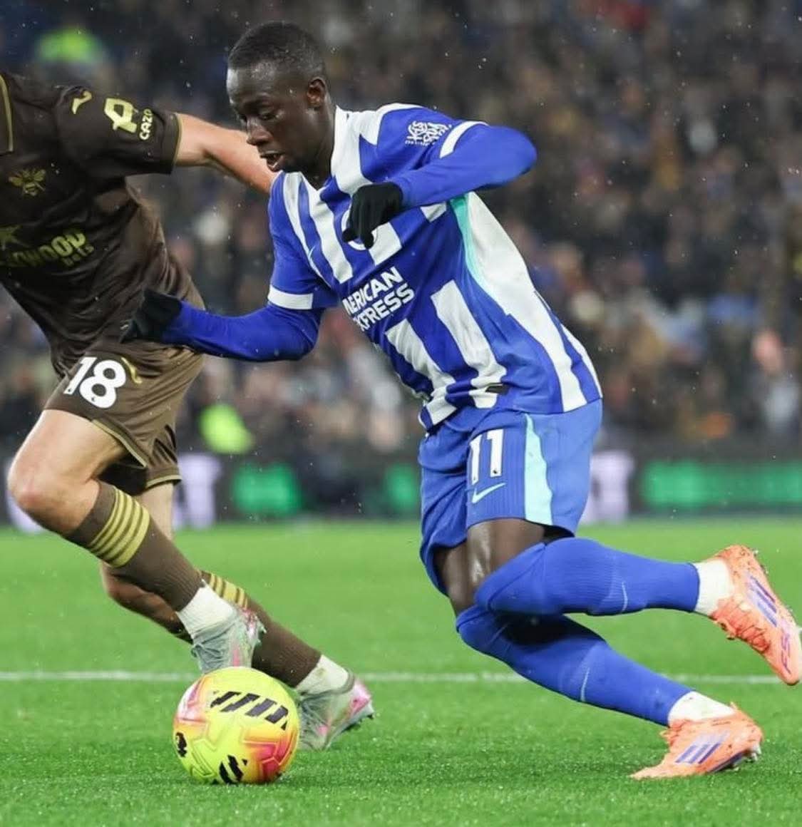 The visitors opened the scoring through Brazilian Tiago, who converted a 22nd-minute penalty. Danny Welbeck made it 1-1 in the 74th, turning in a precise cross from Minteh.