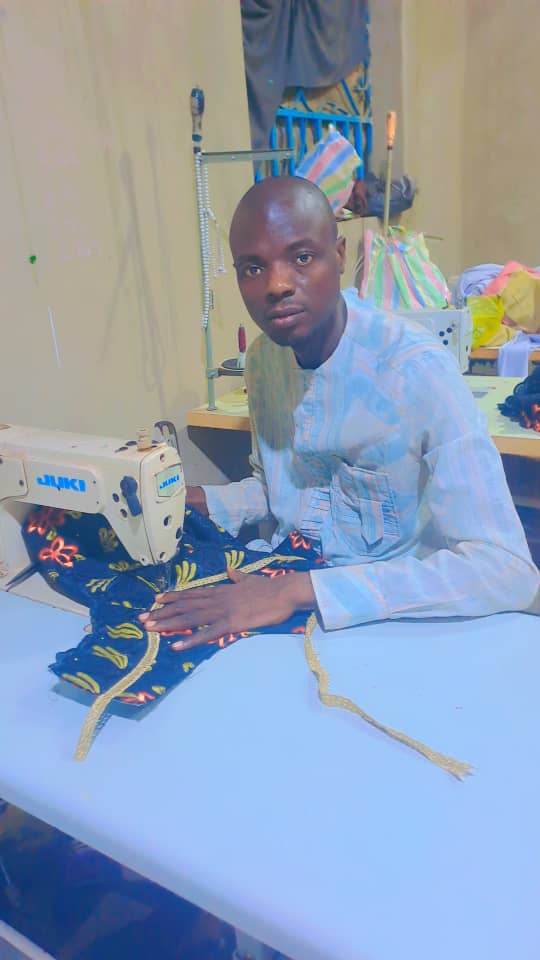 “I officially started learning in 1999 at Latrikunda Sabiji Market,” Jallow recalls. From 1999 to 2006, he apprenticed diligently, mastering diverse styles: Afro-pants, sharp suits, elegant dresses for expatriate clients, and vibrant traditional African attire. To further refine his craft, he later completed a one-month professional training course.