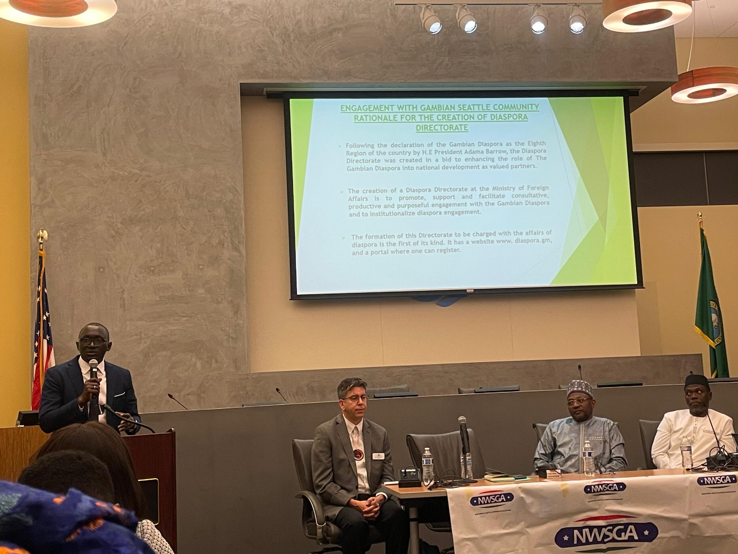 His Excellency Momodou Lamin Bah, Ambassador of The Gambia to the United States, met with hundreds of Gambian diaspora community in Washington State at Shoreline City Hall Saturday evening in a community town hall organized in partnership with the Northwest Seattle Gambian Association.