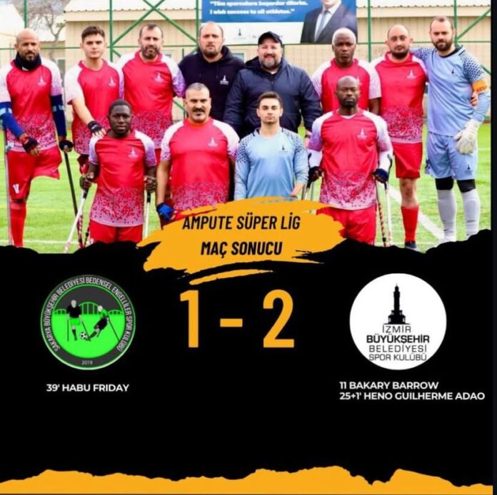 In a heart-pounding Turkish Amputee Football League clash, Gambian sensation Bakary Barrow delivered a masterclass performance, leading Izmir Bayukşehir Sports Kulübü to a 2-1 triumph on Saturday evening. The amputee football star’s brilliance shone through with a crucial goal and a pinpoint assist, cementing his status as a game-changer and an inspiration on the pitch.