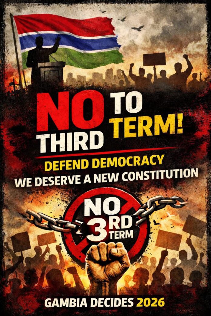 The initiative uses the hashtags #NoToThirdTerm, #GambiaDecides2026, and #DefendDemocracy, calling for a new constitution and rejecting “recycled constitutions of oppression.”