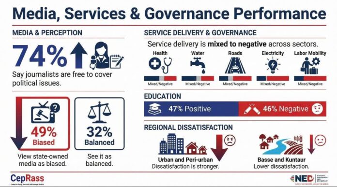 The release arrives at a sensitive moment. With the 2026 elections drawing nearer, issues of cost of living, public service delivery, institutional integrity, and citizen voice are expected to dominate political discourse. The poll suggests that while many Gambians continue to value the freedoms gained after the country’s democratic transition, frustrations over everyday realities could prove politically consequential.