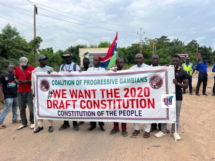 Citizens and activists from the Coalition of Progressive Gambians (CoPG) took to the streets of Banjul on Saturday in a peaceful march, urging National Assembly members to resurrect the 2020 draft constitution and abandon the recently rejected 2024 version, which critics branded a “cabinet constitution” tailored to executive interests.