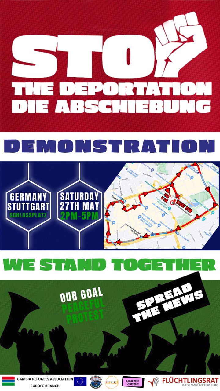 “We have requested a police permit to go out for a demonstration in Stuttgart, Germany, to call on a stop to this massive deportation.”