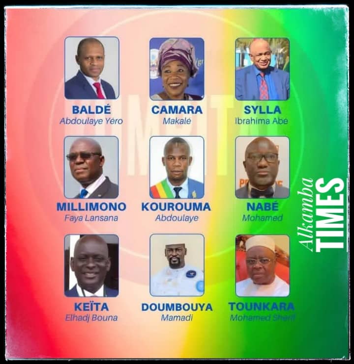 The approved lineup includes: Independents: Mamadi Doumbouya (the incumbent transitional leader) and Mohamed Sherif Tounkara, Abdoulaye Yéro Baldé, Front Démocratique de Guinée (FRONDEG), Makalé Camara, Front pour l’Alliance Nationale (FAN), Ibrahima Abé Sylla, Nouvelle Génération pour la République (NGR), Faya Lansana Millimouno, Bloc Libéral (BL), Abdoulaye Kourouma, Rassemblement pour la Renaissance et le Développement (RRD), Mohamed Nabé, Alliance pour le Renouveau et le Progrés (ARP), Elhadji Bouna Keita of Rassemblement pour une Guinée Prospére (RGP).