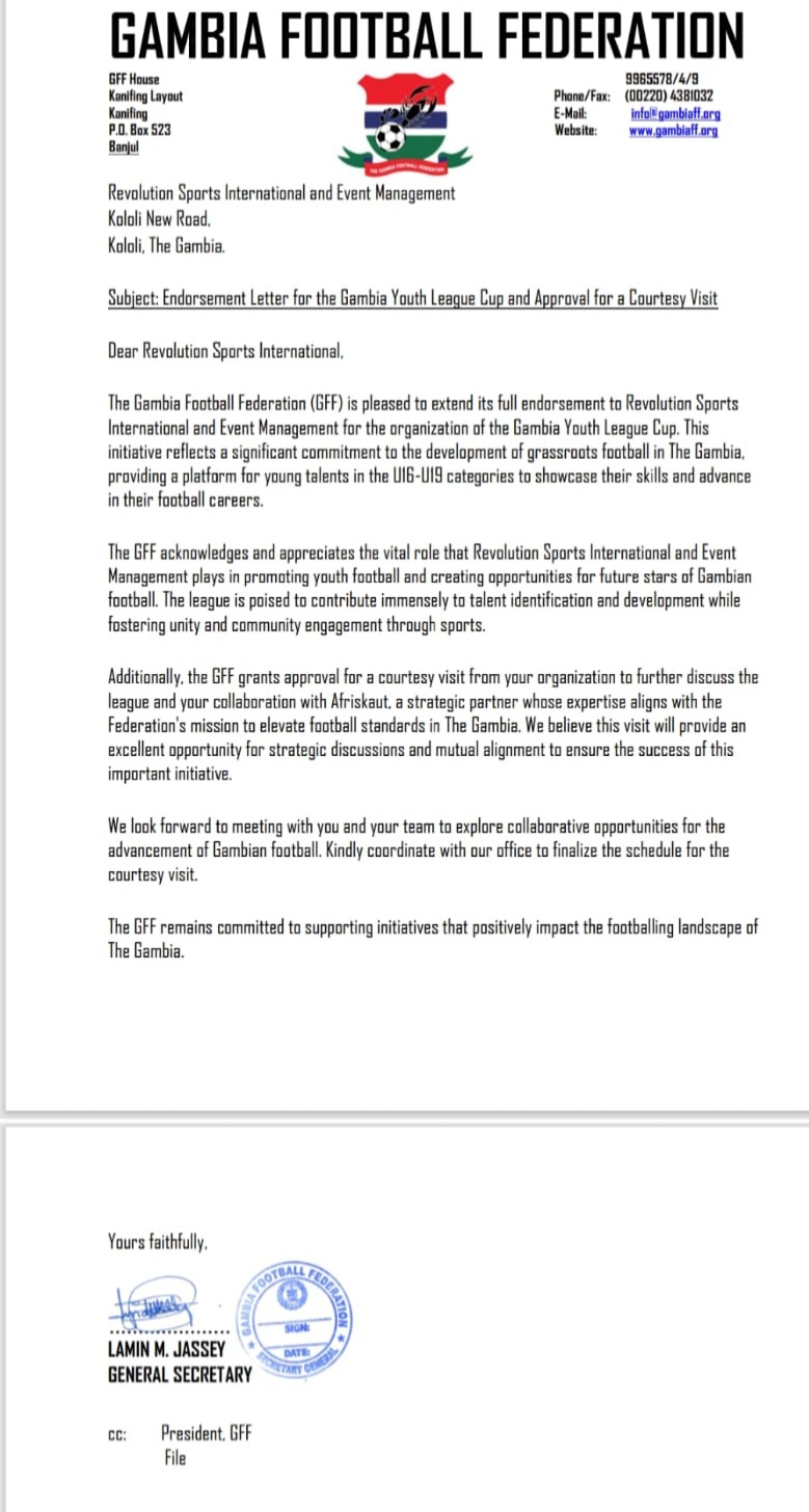 Afriskaut’s CEO, Naemo, personally wrote to the GFF, prompting follow-up discussions that saw General Secretary Lamin Jassey escalate the matter to the Federation’s Executive Committee. In response, the committee appointed a technical team to engage directly with Afriskaut and explore the proposal in detail.