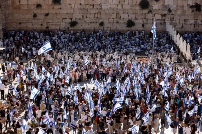Carrying Israeli flags, many also formed a human chain at different locations in Jerusalem, including in front of Jaffa Gate in the Old City.