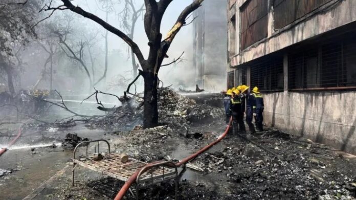 Wreckage from an Air India plane that crashed near the airport in Ahmedabad [Handout/ Central Industrial Security Force/AFP]