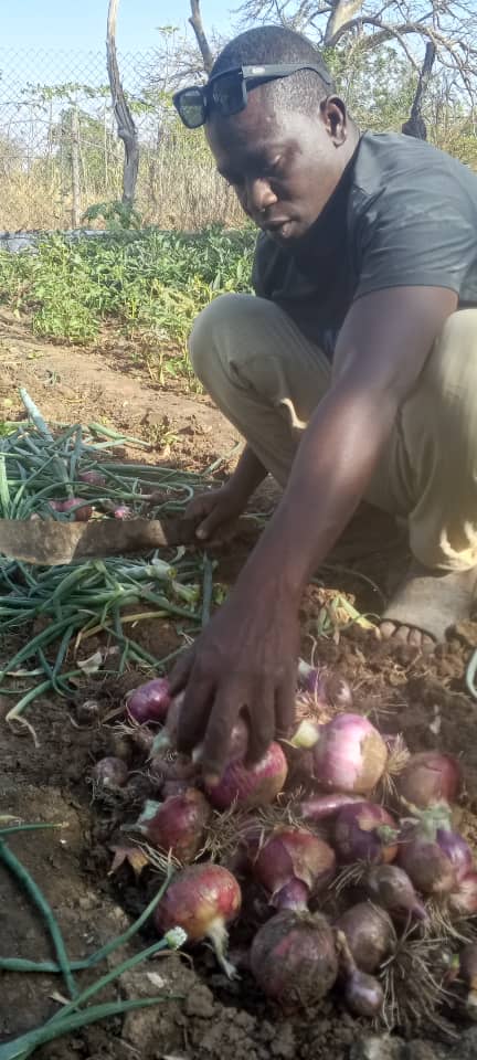 Abdoulie Bah, harvesting onions at his farm at Pakalinding.