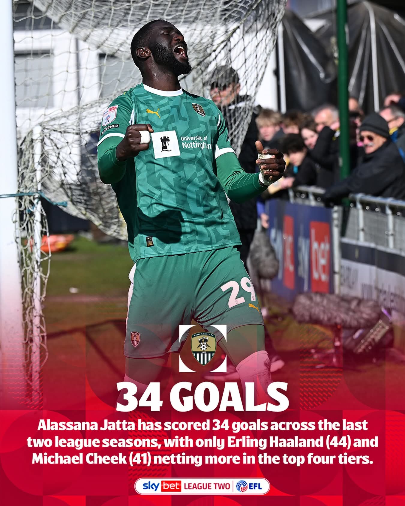 Jatta has now taken his tally to 15 goals this season, following an outstanding previous campaign where he scored 19 goals and was nominated PFA League Two Players’ Player of the Year. Notts County currently sit third on 73 points.