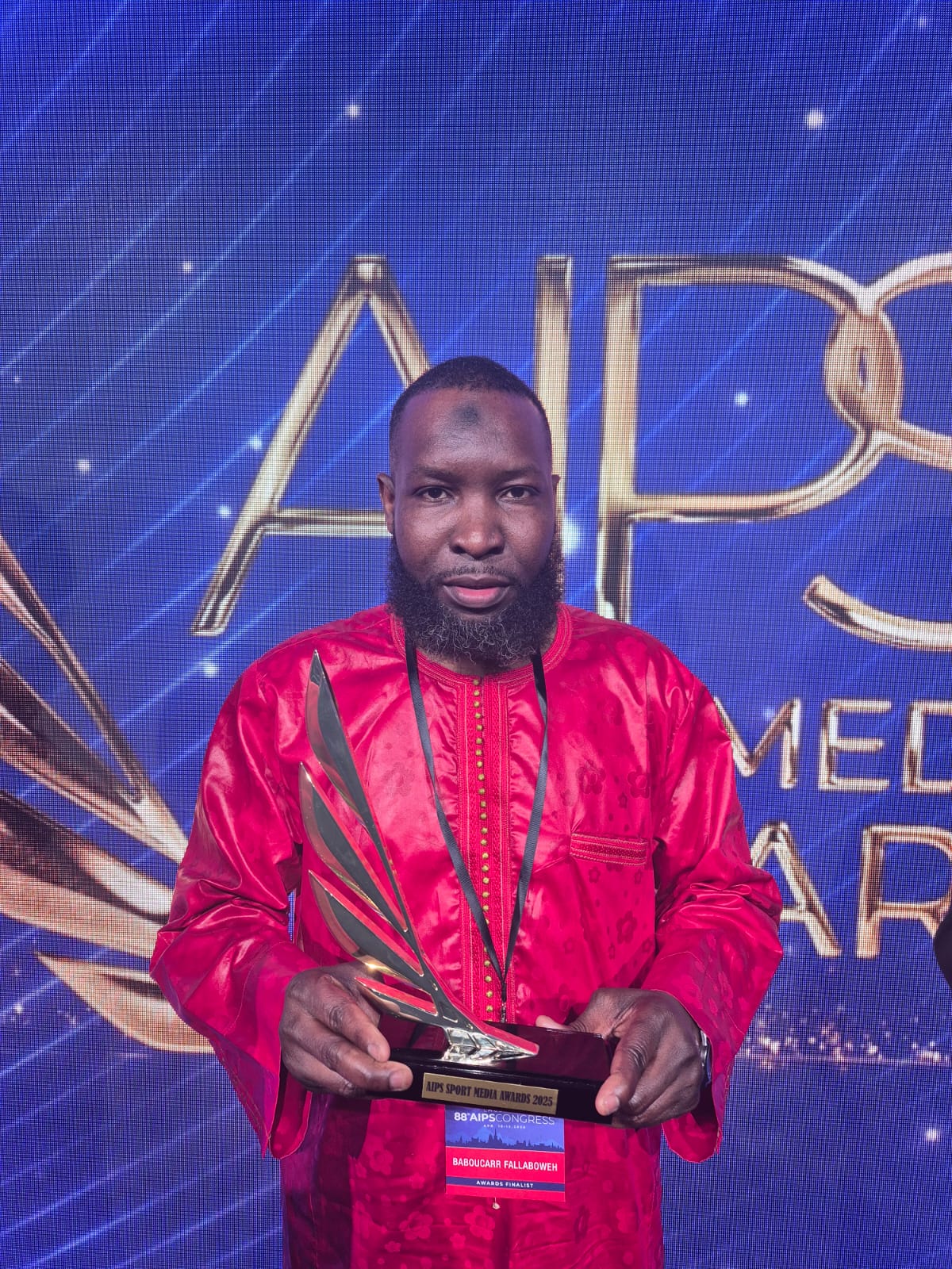 Baboucarr Fallaboweh, Head of Sports and Sports Editor at The Alkamba Times, was today awarded the prestigious Investigative Reporting accolade at the 8th edition of the AIPS Sport Media Awards. The award, presented by AIPS President Gianni Merlo, recognizes outstanding investigative journalism in the world of sports.