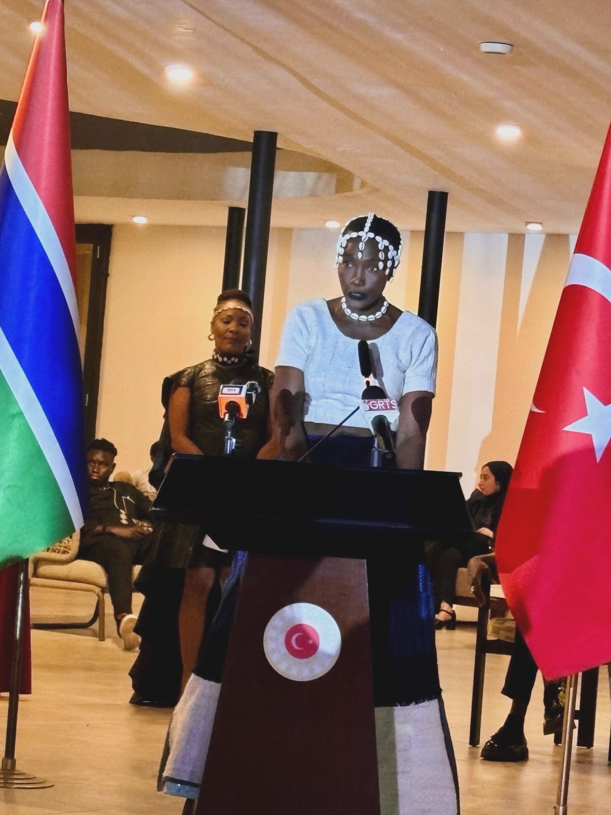 Ya Awa Conateh spoke at the “2 Continents, 1 Runway” fashion and cultural show, organized in collaboration with Turkey’s İzmir Olgunlaşma Institute and supported by the Yunus Emre Institute. Marking The Gambia’s 61st Independence anniversary, the event brought together designers from both countries to share textiles and stories. Gambian artists used Turkish fabrics, while Turkish designers reimagined Gambian materials, exploring the balance between structure and fluidity, precision and warmth.