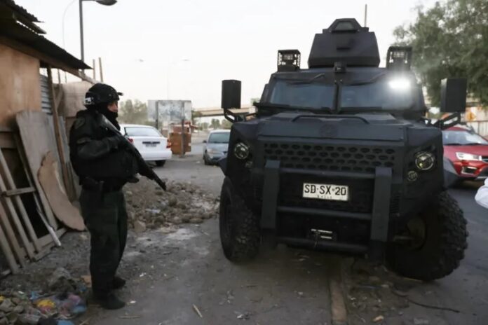 Chilean police carry out an operation to dismantle a cell of the Venezuelan criminal gang Tren de Aragua on January 22 [Investigations Police of Chile/AFP]
